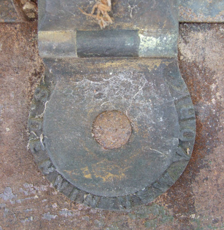 disintergrating address label on lid, printed with Victoria and Albert Museum address