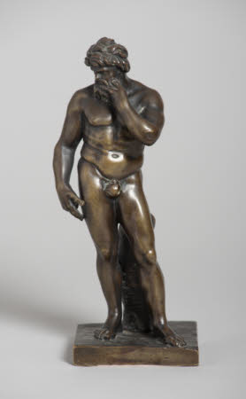 Sculpture. A bronze sculpture depicting Pluto and attributed to Michel Anguier (Eu 1612 - Paris 1686). Bronze statuette of Pluto standing, naked, his left hand stroking his beard, his right hand by his side. [lacking Cerberus]