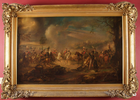 Oil painting on canvas, King George IV (1762-1830) and the Duke of Wellington (1769-1852) at a Review at Windsor by Eduard Ströhling (Düsseldorf 1768 - London after 1826). The main figures placed centrally, with the review going on around them.
