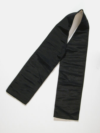 Man's crossover black stock, 'real poplin' lined in white satin with large snap fastener (Ecclesiastical?).