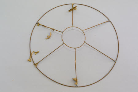 Fifteen wire lampshade skeletons, of various sizes and styles.