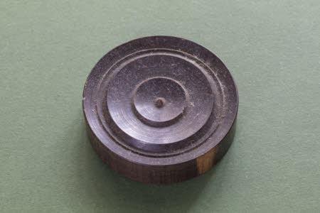 Game. Draughts counters. Turned wood. Twelve white and twelve black.