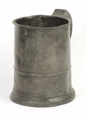 A pewter quart turncated measure engraved with initials JHL"marked as verified in Kent