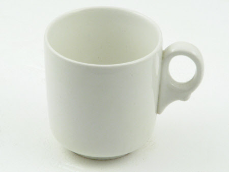 Six plain white china cups and six plain white china saucers. Saucers marked on the base, Alfred Meakin / England.