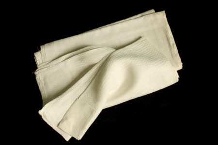 Sixteen cream coarse linen tablecloths patterned with woven checks. Used in the gardens or kitchen.