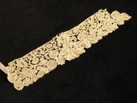 Four pieces of bobbin lace, possibly for use as a pair of cuffs and a collar. Possibly Indian in origin. (Similar in type to items NT18287.1-2, NT18319, NT18264 and NT18218)