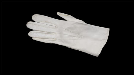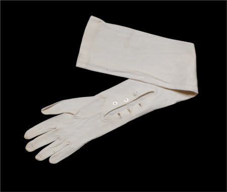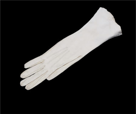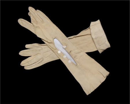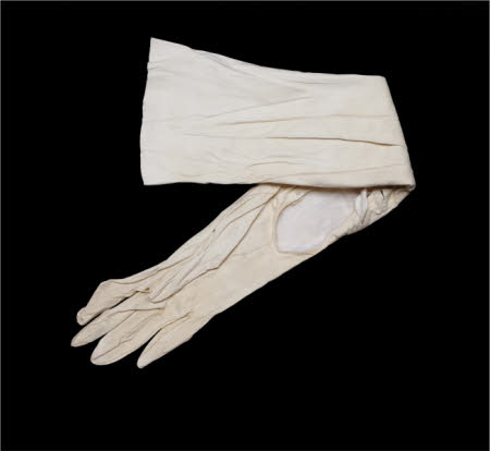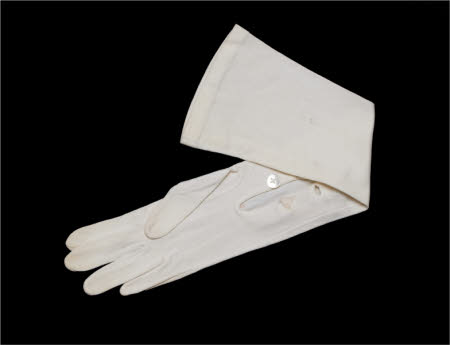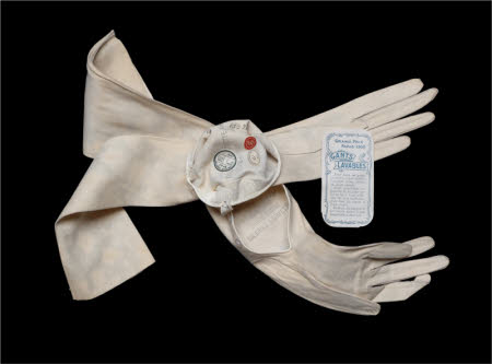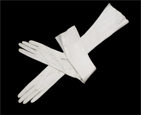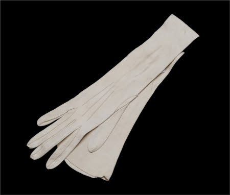 A collection of lady's gloves circa 1900 and later, mainly in ivory, also black and grey; and a square green metal travelling case.