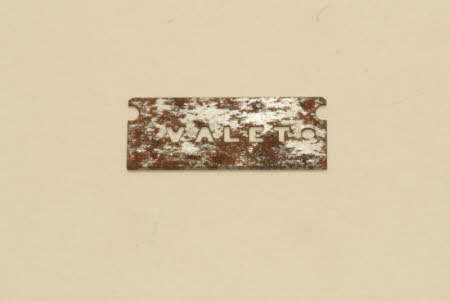 A red metal cigarette tin, marked 'Sarony Cigarettes, Silk Cut Virginia, Nicolas Sarony & Co. New Bond St. London'. A razor inside, with two spare blades and a metal rod/sharpener.