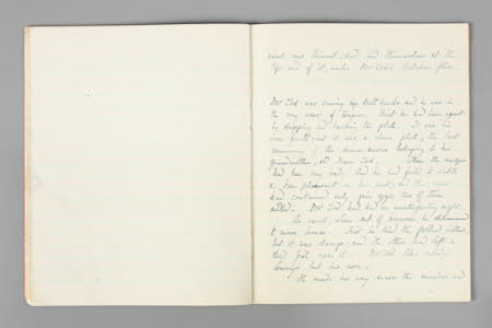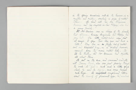 Manuscript of The Tale of Mr Tod, a brown 'St Paul's' exercise book. The title is written in pencil on the front cover (top right) and on the first page. The text is written in ink on the right hand (odd numbered) pages only, with occasional alterations made to the text in pencil. There are no illustrations. This may be the latest of the three manuscripts of The Tale of Mr Tod in the National Trust Collection; see HIL.R.13 for further details. The opening paragraph is highlighted by a pencil line in the margin; the paragraph was altered for publication. See also HIL.R.13 and HIL.R.14, two further manuscripts of The Tale of Mr Tod.