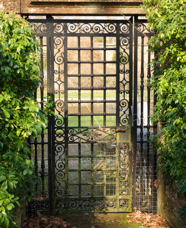 Pair of wrought and cast iron gates with bronze handles and hinges.