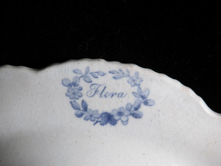 Floral (transfer printed mark in a wreath of flowers in underglaze blue to underside)