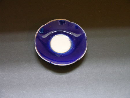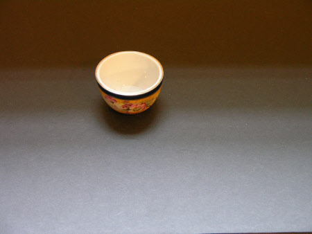 A set of six cups, A miniature dark blue floral patterned tea set with border of painted pink roses. Comprising six matching cups & saucers, Tea pot with lid, milk jug and sugar bowl. Stamped Dorchester on base.