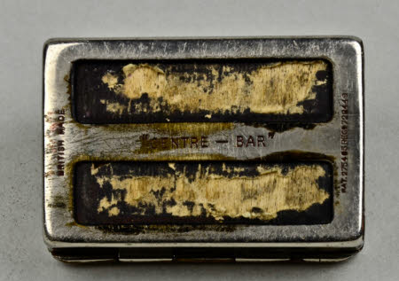 Silver metal match case, London Chamber of Commerce. Space in bottom edge to insert abrasive paper accessible on base via void and 'central bar' in metal. British made PAT275405REG729449