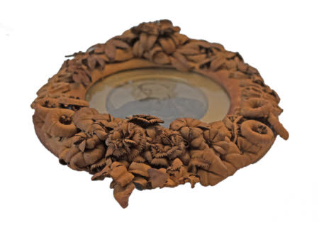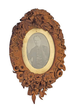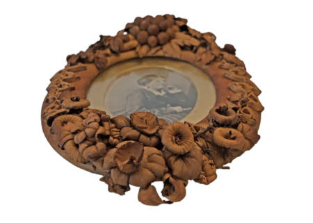 A pair of leather framed photographs of Elizabeth Winks and David Hall Winks. The frames are hand worked by Florence when she was sixteen and are mentioned in her diaries.
