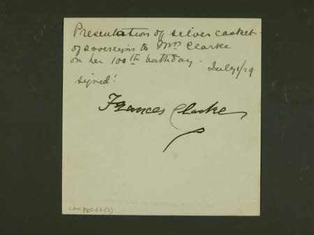 Possibly a gift from the Hon. Gerald Agar-Robartes, 7th Viscount Clifden, who gave Lanhydrock to the National Trust in 1953, and remained living in the house until his death in 1966.