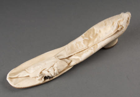 Pair of Mayer of Paris cream satin shoes, with floral design on front incorporating a small piece of cut steel decoration